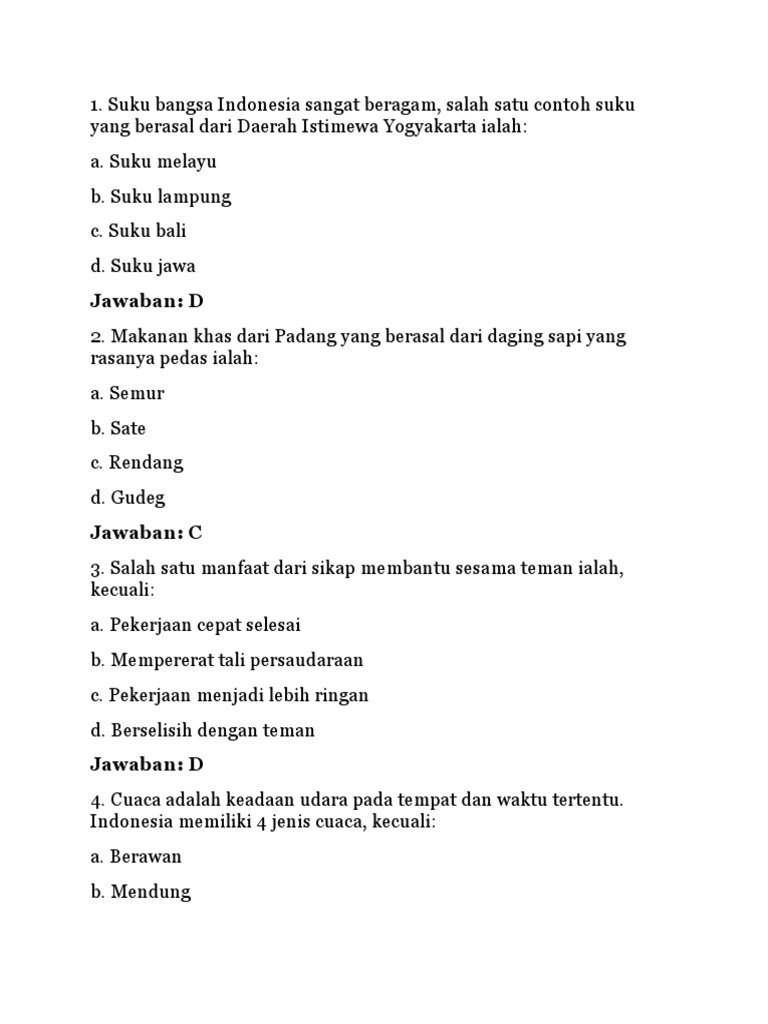 Mari kita mulai dengan berbagai jenis soal yang umum ditemui di kelas 3 SD: